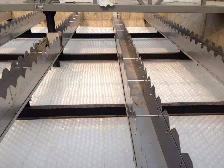 傾斜角度調(diào)整為0、5、20、35、40、45、60和90度。保持液壓平衡,合理規(guī)劃處理負(fù)載的斜管或斜板可以改善外部負(fù)載率到100-200%的情況下保證污水質(zhì)量,結(jié)果表明,傾斜45-60度時沉積能力最高,沉積顆粒的“自凈”效果較強(qiáng)。但在寒冷地區(qū),斜管的最大外部負(fù)載率應(yīng)控制在5-6.3m/h,和溫暖的熱帶地區(qū)不應(yīng)超過7.5--8.8m/h的規(guī)模。